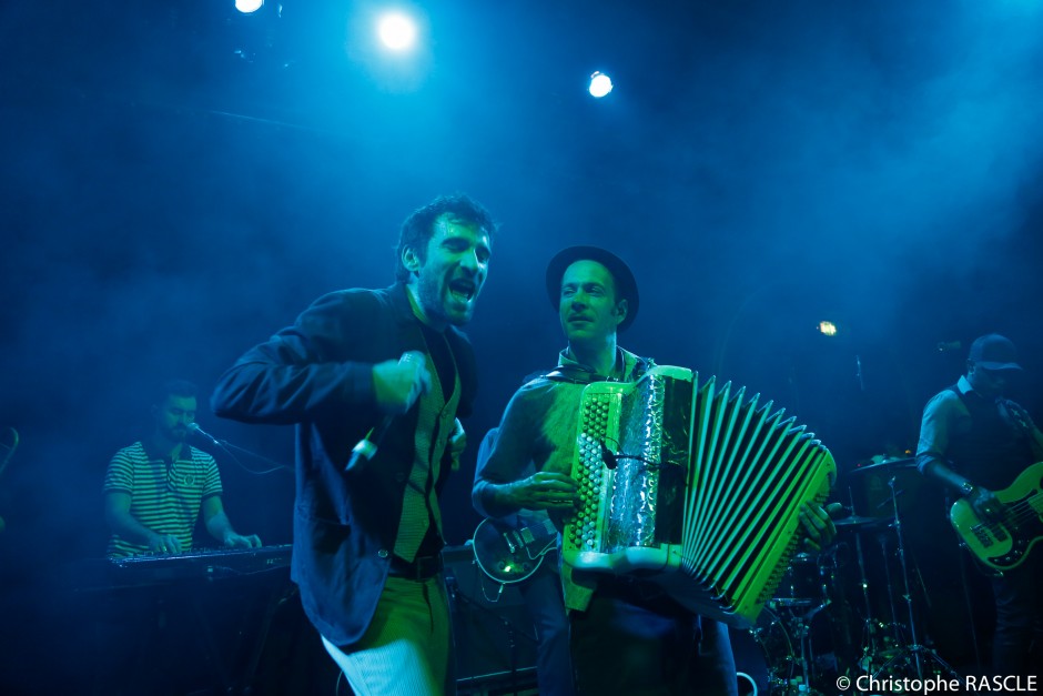 <p style="text-align: justify;">Dann aber der Act des Abends. Nach einer Umbaupause, bei der die Musiker von Matteo selbst mit anpackten, kündigte eine vernebelte Bühne auf mystische Weise Babylon Circus an. Der Gitarrist Georges und Keyboarder Olivier kommen als Erstes und deutet das Thema „Never stop“ an. Dann kommen nach und nach alle 9 Musiker auf die Bühnen. Das Thema der Tour war „Never Stop“ und so begann auch die Show. Wer der Meinung ist, das „Never Stop“ ein musikalischer Bruch der Band ist, muss sich den Song in der Show anhören. Spannungsgeladen, intensiv und für ein Intro von Babylon bestens geeignet postuliert dieser Song die Dynamik und Varianz der Band. Dann begann eine schweißtreibende Show mit Songs aus allen Alben der Band. Urplötzlich holten sich die Musiker Damen auf die Bühne und forderten das Publikum ein, auf einen chansonähnlichen Song zu tanzen.</p>